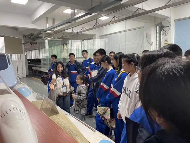 本次活动由孙骏负责接引及摄影工作。在基地安排下,胡钰瑶为员工们讲解了铁路园和轨道交通科普馆的展示内容,杨丽负责讲解气动实验室与实车碰撞实验室的相关内容。师生们依次参观了上述场所。
