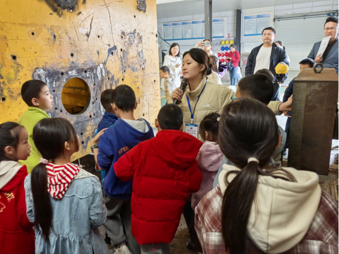 在气动与碰撞实验室区域,赵紫怡结合展示件讲述列车空气动力学外形设计、列车尾流特性及碰撞吸能结构的工作原理,让员工了解到高速运行环境下车体的安全防护逻辑。