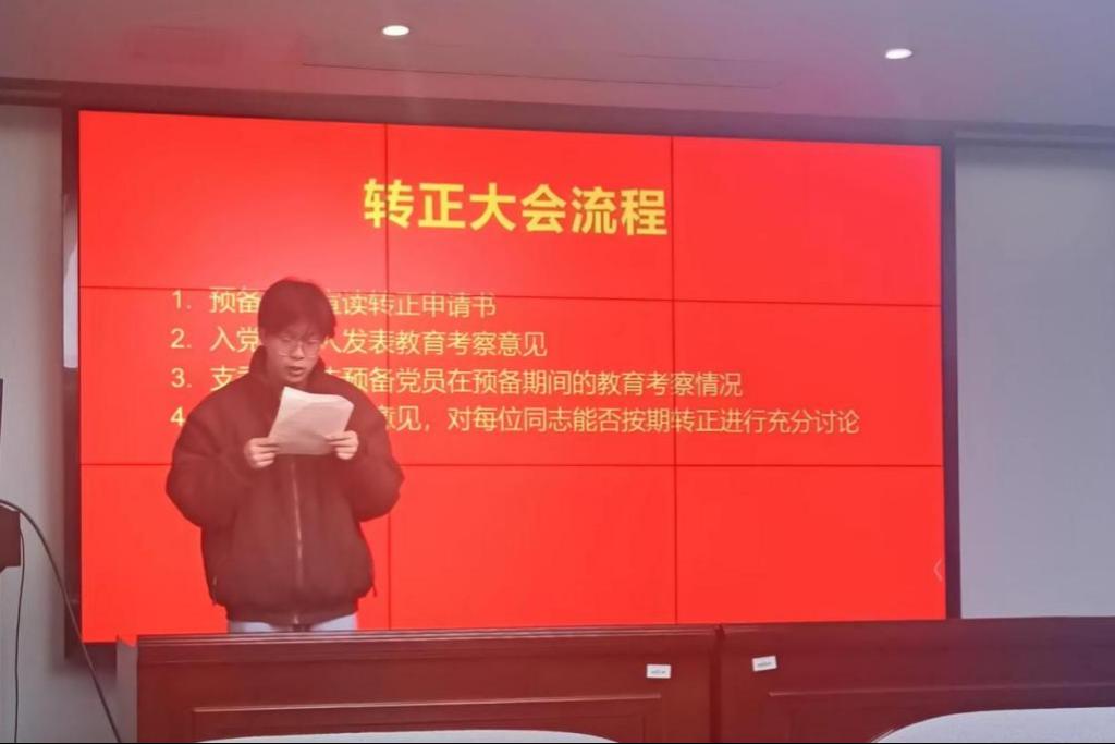 12月19日,交通运输第一员工党支部于交通楼425教室举行预备党员转正大会和“学习领会习近平文化思想”主题党课活动。会议由支部副书记李朵同志主持。