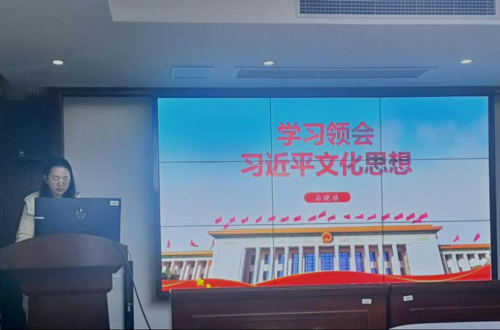 预备党员转正大会结束后,支部书记石晓琪同志以“学习领会习近平文化思想”为题展开授课。石晓琪同志首先带领与会同志学习习近平文化思想的形成过程,然后从“习近平文化思想的重大作用”“习近平文化思想的基本内涵”“文化建设规律认识的新高度”三个方面进行讲解,重点阐述了“新的文化使命”“九个坚持”“七个着力”和“十四个强调”的深刻内涵,引发了同志们对习近平文化思想的核心内容的深入思考。