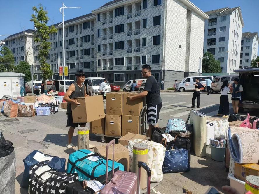 本次跨校区搬迁工作从早上八点开始,分班级分批次搬迁。公司全体辅导员分布各个楼栋统筹安排,各班级男女生各有一名负责人协调班内同学完成搬迁工作。恰逢长沙高温天气,老师和同学们毫不畏难,没有停下忙碌的身影。同学们互帮互助、团结一心,员工党员、员工干部和志愿者们秉持着强烈的责任心,积极配合做好服务保障,维持搬迁秩序,确保搬运车辆及时到位,员工行李物品及时归寝。