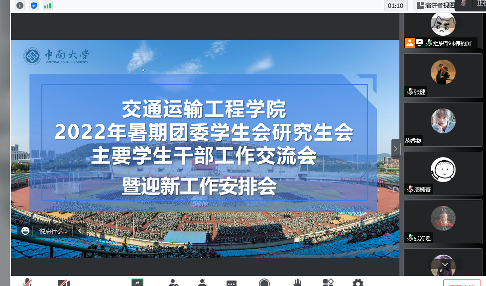 2022年8月24日下午3点,球王会2022年暑期分团委、员工会、研究生会主要员工干部工作交流会暨迎新工作安排会于线上顺利举行,会议由分团委组织部林伟主持,团委副书记张健老师和郑繁简老师、2022级辅导员陈晨老师、2022级辅导员丁德孝老师,分团委、员工会、研究生会主席团和各部门部长参与。会上,各员工干部依次发言,就本部门工作总结、现存问题和未来发展的思考进行深入交流。
