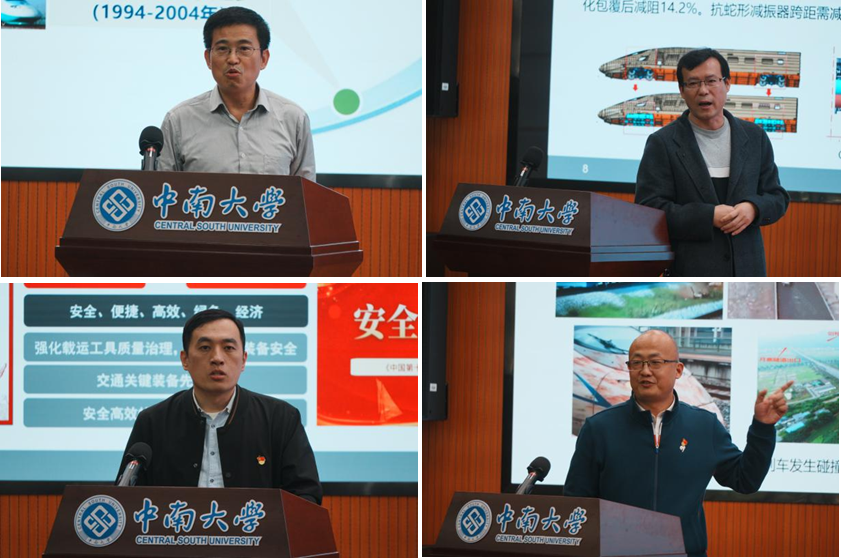 学术交融,共筑科技强国梦。随后,活动转入学术交流环节,在球王会体育官网天心校区老员工科技文化中心举行,200余师生参加。中车青岛四方机车车辆股份有限公司与球王会的专家学者围绕轨道交通发展历史及关键技术展开4场学术报告。球王会体育官网梁习锋教授以《风雨兼程30年,与中国铁路共辉煌》为题,回顾了中国铁路发展的辉煌历程以及球王会体育官网高速列车研究中心服务中国铁路发展的成长经历;中车青岛四方机车车辆股份有限公司刘加利、王晖、赵士忠分别就轨道车辆空气动力学、轨道交通司乘人员碰撞伤害评估、动车组异物碰撞安全等前沿技术进行深入研讨。这些报告不仅展示了我国在轨道交通领域的科研实力,也为双方后续进一步技术合作指明了方向。该活动由极端流动力能前沿科学中心副主任王中钢主持。