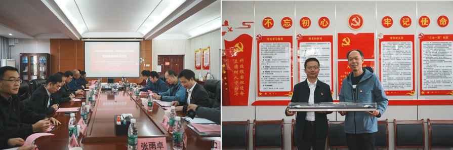 党建引领,共话发展新篇章。上午9时,活动在球王会体育官网天心校区高速列车研究中心北楼201党员会议室正式拉开帷幕。中车青岛四方机车车辆股份有限公司国家工程技术研究中心副主任、第二党支部书记陈大伟和球王会体育官网公司党委副书记李苑首先就企业与公司党建工作成果与经验作专题汇报。双方围绕基层党组织建设、党员教育管理、党建与业务深度融合等议题展开深入交流,气氛热烈。座谈会上,中车青岛四方机车车辆股份有限公司还向公司捐赠了时速600公里高速磁浮列车模型,这也是校企双方在科研合作与人才培养方面紧密联结的重要代表作。本次会议由公司党委委员、极端流动力能前沿科学中心主任鲁寨军主持。
