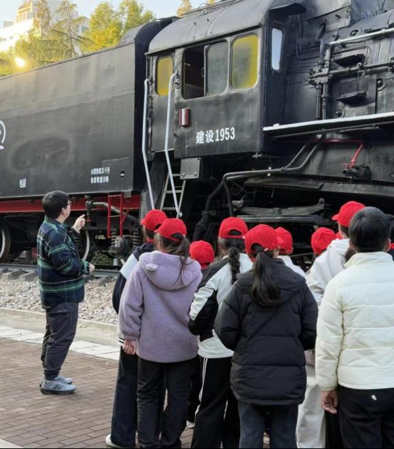活动伊始,志愿者姚若冰负责迎接师生团队,雷超颖为同学们讲解铁路园,带领大家了解铁路交通运输的发展概况和悠久的发展历史,带来一场惟妙惟肖的轨道交通写实课。