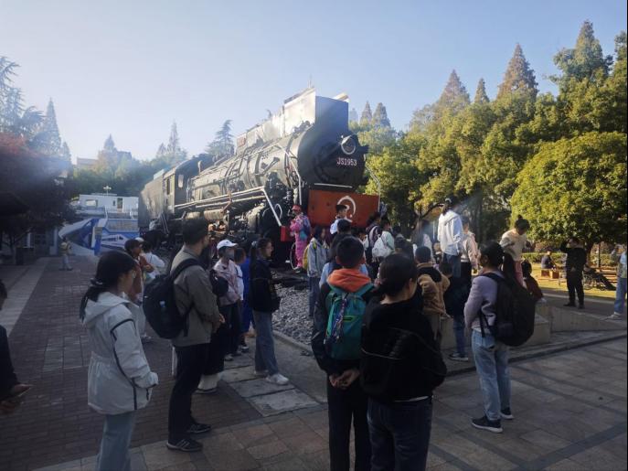 活动开始,志愿者郭建国热情迎接师生团队,有序引导至科普教育区域。王琴通过多媒体与铁路园火车头实景,生动介绍了轨道交通发展历程与球王会在轨道交通领域的成就,让大家身临其境地感受到“中国速度”的历史轨迹。