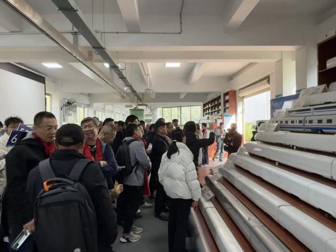 在气动实验室,讲解员介绍了高速列车空气动力学研究的主要内容与实验方法。参观员工重点了解了传统轮轨列车动模型试验台的结构布局及工作流程,包括加速段、试验段和制动段的功能划分,以及弹射加速、精密测试和复合制动等关键技术。通过动模型演示与讲解,员工们深入认识了列车高速交会、穿越隧道及侧向风作用下的空气动力学问题,了解了空气阻力、气动噪声和气动稳定性对列车运行性能与安全性的影响,对流线型车体设计和气动优化技术在高速铁路发展中的重要作用有了更加清晰的理解。
