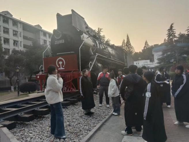 在铁路园,讲解人员结合蒸汽机车、内燃机车、电力机车,向来访师生介绍了不同类型铁路机车的结构特点和技术演进。通过实物观摩与讲解,员工们进一步认识了轨道交通装备在实际运营中的应用场景,对未来可能从事的设备维护、检修与运行相关岗位形成了更加直观的认知。